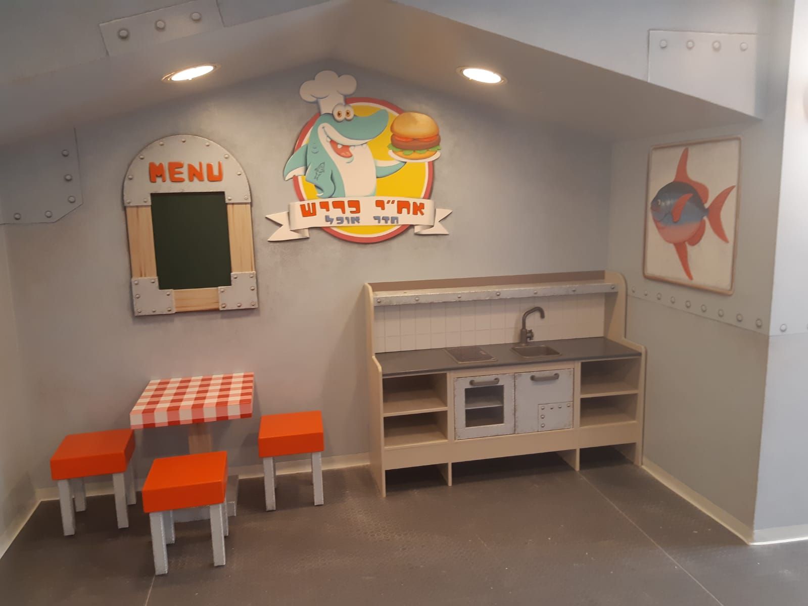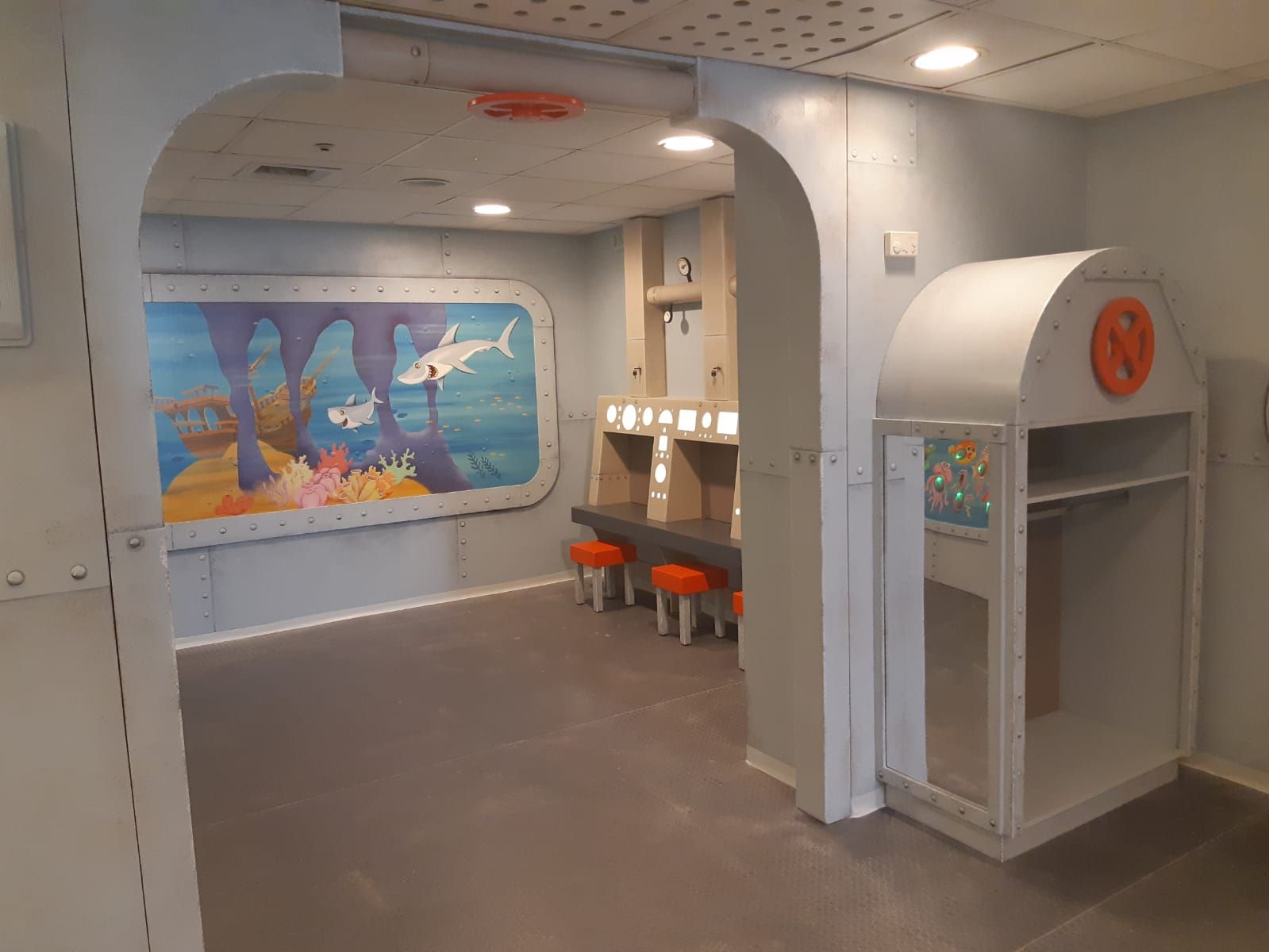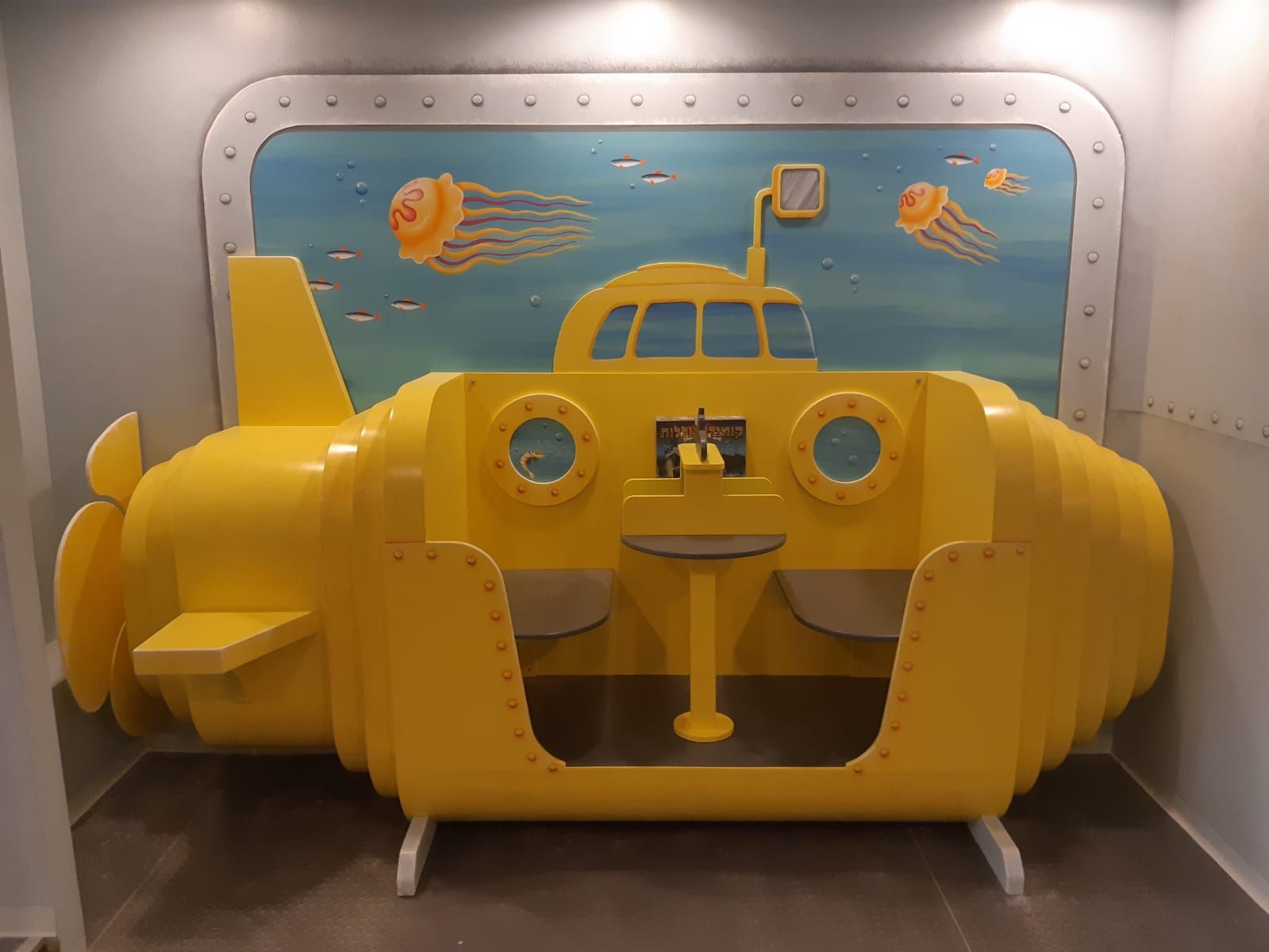 הנהלת בית המלון ישרוטל ספורט רצתה לייצר אטרקציה נחמדה ומיוחדת לילדים הקטנים אשר מתארחים במלון. קבלו את פרוייקט צוללת אשר כולל מתקנים, פינות ישיבה, עיצוב ייחודי ומדבקות קיר לאווירה
