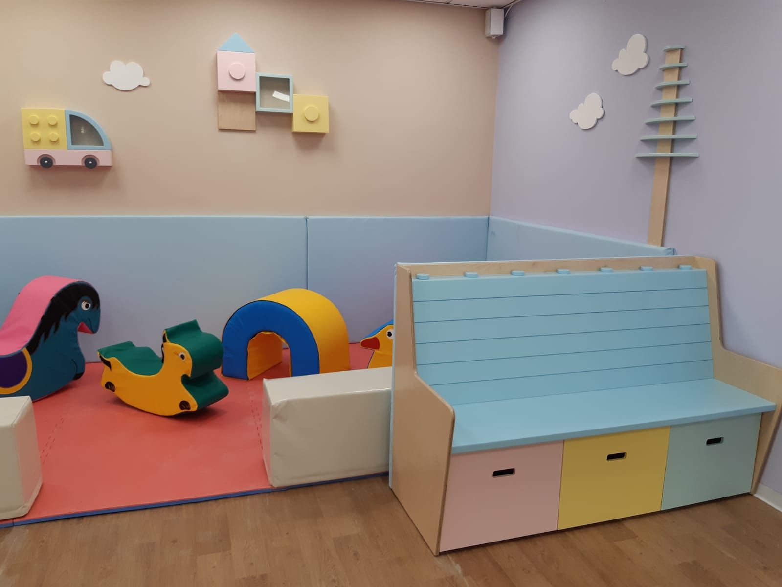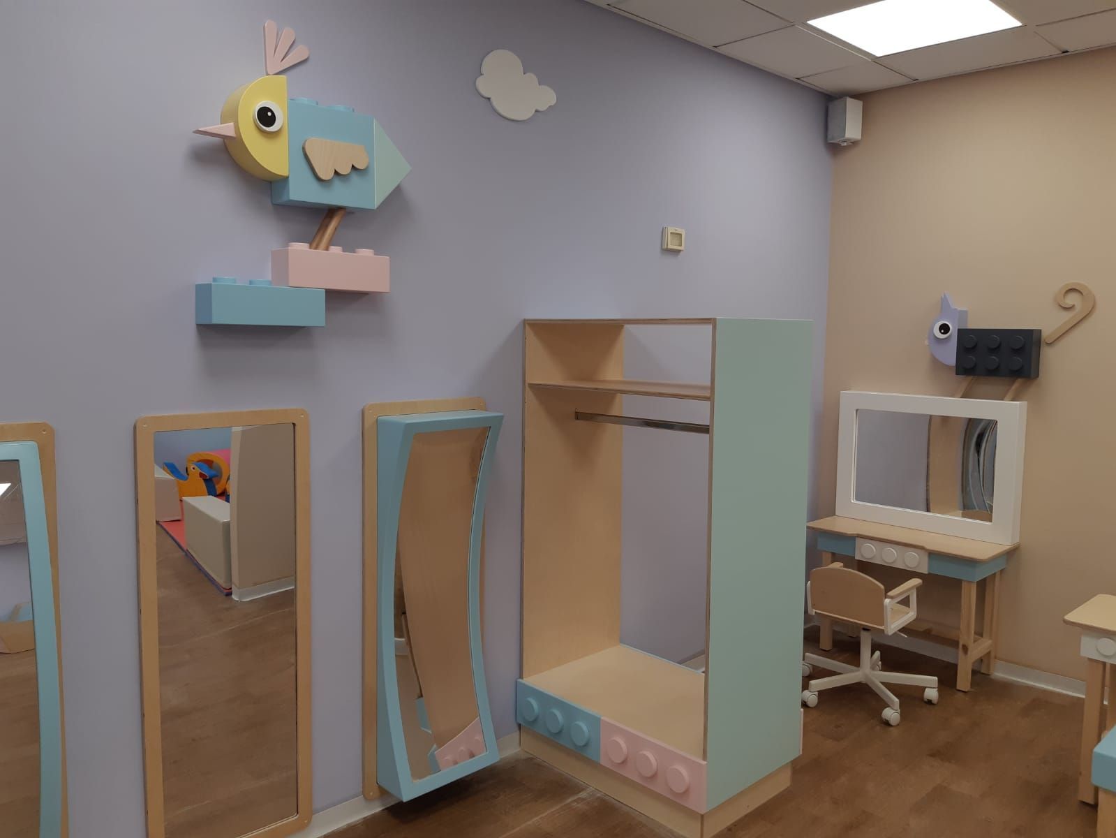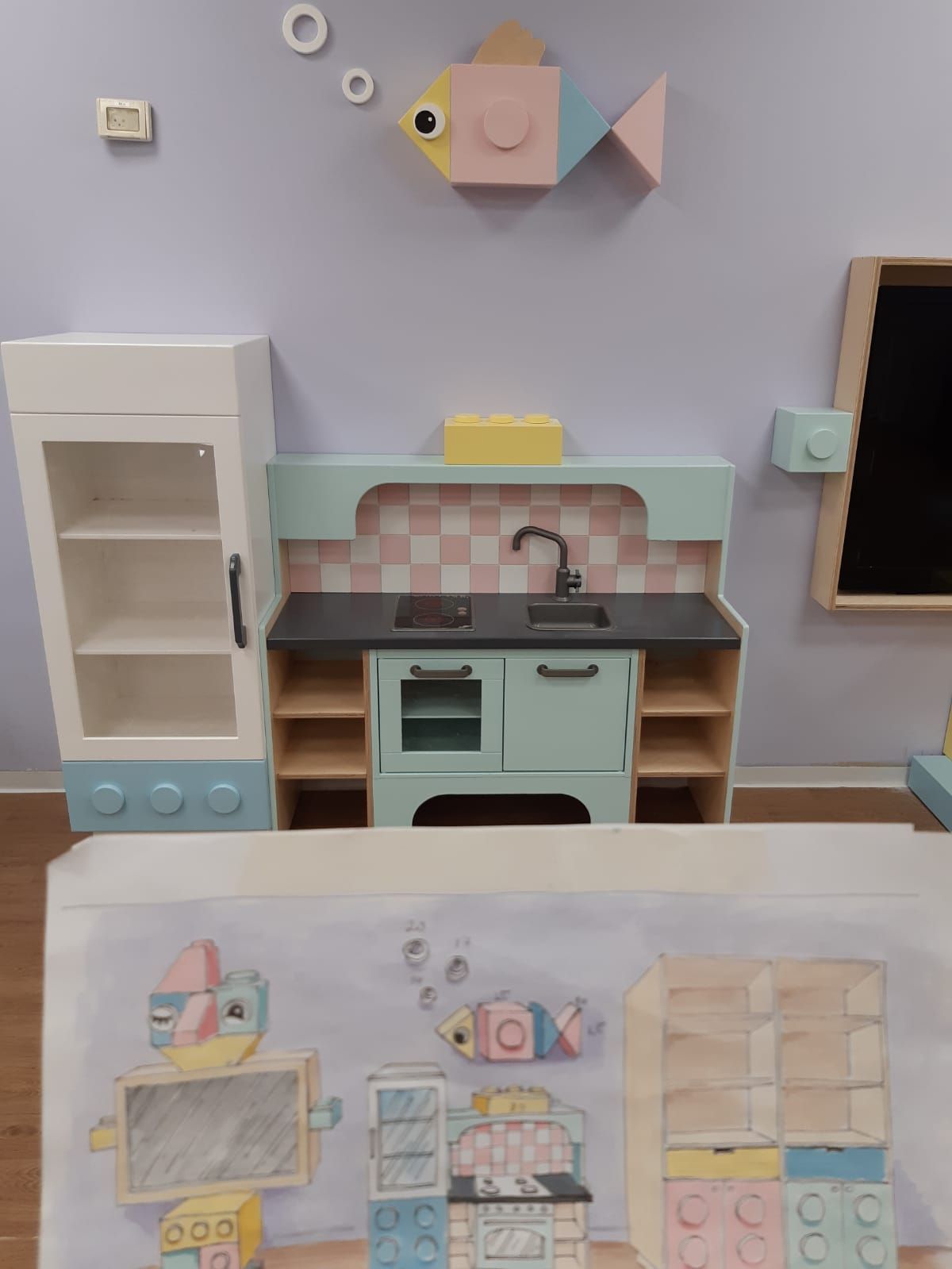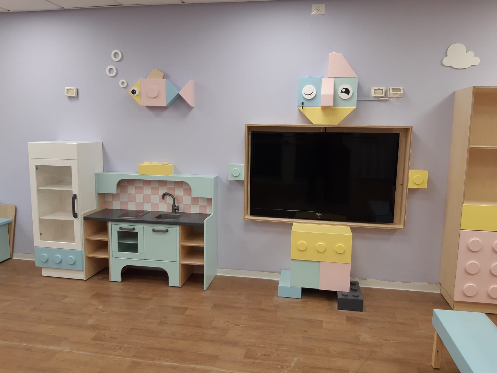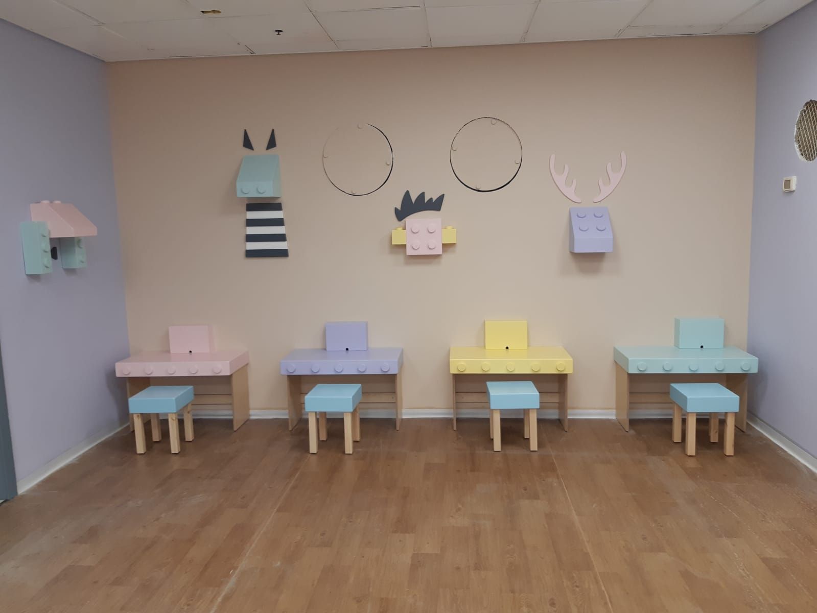 משחקיה וחדר ילדים אשר בנינו בית המלון ישרוטל אגמים, כולל פינות יצירה, שולחנות ופינות משחק